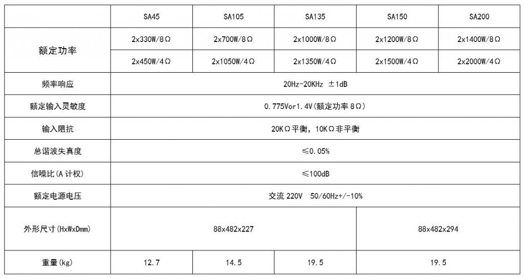 - 具备完善的接口:信号输入:卡侬XLR,输入/信号并联输出。喇叭输出:SPEAKON专业输出插座。
