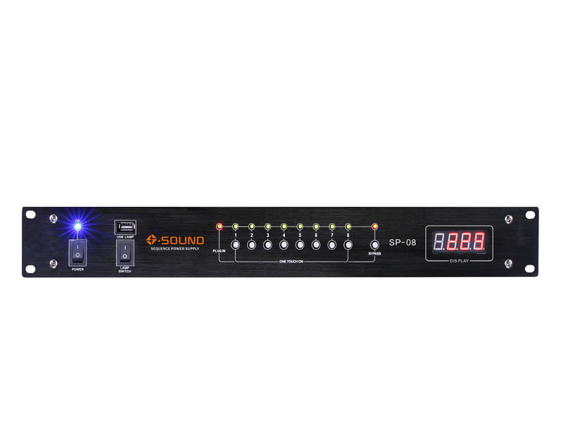 整机可由时序开关控制,每通道亦可通过按键独立控制,两台机器可以进行联机控制,从而扩展为16路电源时序器,面板自带USB灯插孔,带过流和短路保护功能。